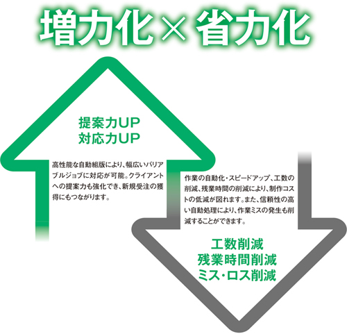 印刷工程の効率化にとどまらない企業価値の向上、企業全体の「進化」を実現します。